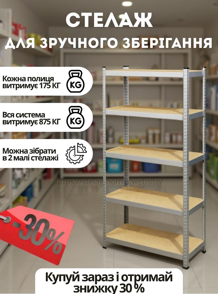Зручне зберігання і економія місця у будь якому приміщенніЦей стелаж створений для тих, кому потрібно багато місця для зберігання без хаосу. Міцний метал і деревні полиці витримують навіть важкі мішки та інструменти. Конструкція збирається швидко і зрозуміло, підходить навіть для новачків. Ви можете поставити його в гаражі, підвалі, на складі або дома, а полиці легко переставляються під будь які речі.